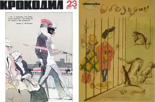 Карикатуры из советских журналов: стиляги — западные агенты.