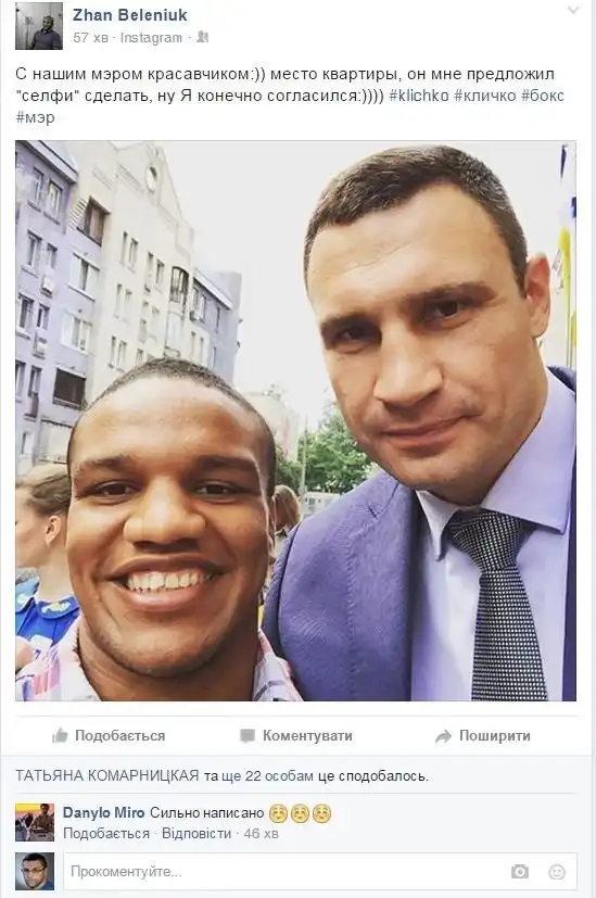 Украинский спортсмен Жан Беленюк получил от Виталия Кличко селфи вместо квартиры