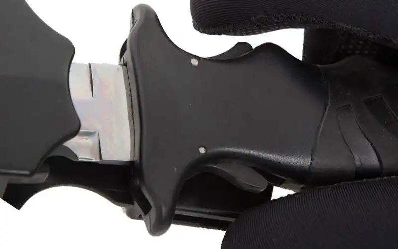 5. Во избежание потери ножа для подводной охоты, необходимо периодически проверять целостность резиновых ремней, которыми ножны крепятся к телу.