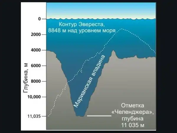 А недавно были получены сведения, что на дне Марианской впадины есть настоящие горы: с помощью эхолокации удалось «увидеть» четыре хребта высотой 2,5 км.