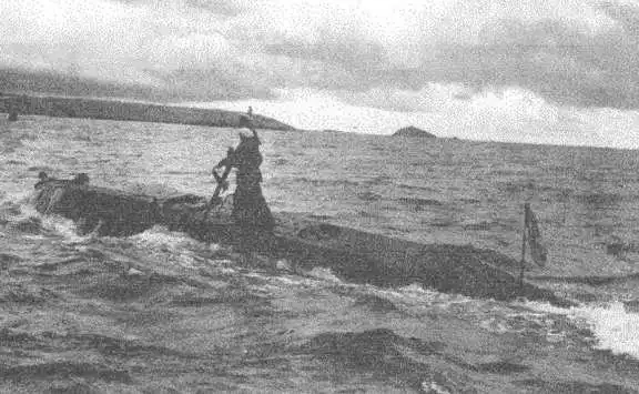 После 18 часов пребывания под водой четверо подводников с наслаждением вдыхают наконец чистый воздух открытого моря. Приятно видеть над собой небо, пусть даже в грозовых тучах.