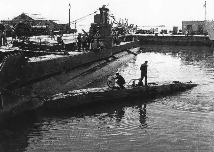 В полночь XE3 встретилась с подводной лодкой “Стиджиэн”. Им было легко отыскать друг друга благодаря пеленгаторной станции: ценное усовершенствование, дающее возможность океанской подводной лодке без труда отыскать свою “малютку” и, взяв ее на буксир, доставить в базу.