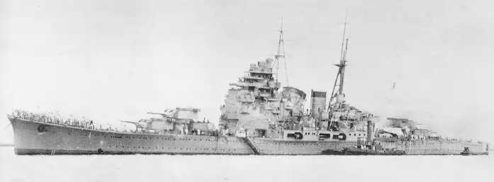 В 13 часов стал виден корабль с пятью двухорудийными башнями. Это был Такао – японский крейсер водоизмещением 10000 т. Рядом с крейсером стоял миноносец.