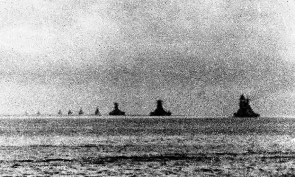 21 ноября 1944 года в 0 ч 20 мин оператор радиолокационной станции американской подводной лодка "Силайон" (SS-315) (Ее часто называют "Силайон II", так как она была названа в честь лодки, погибшей 25 декабря 1941 года на верфи Кавите на Филиппинах) заметил на своем экране отметку о цели. Погода была прекрасной. Командир подводной лодки начал преследование, в действие были введены все четыре дизеля. Вскоре оператор доложил об отметках четырех целей. Определены они были как 2 тяжелых крейсера и 2 линкора.