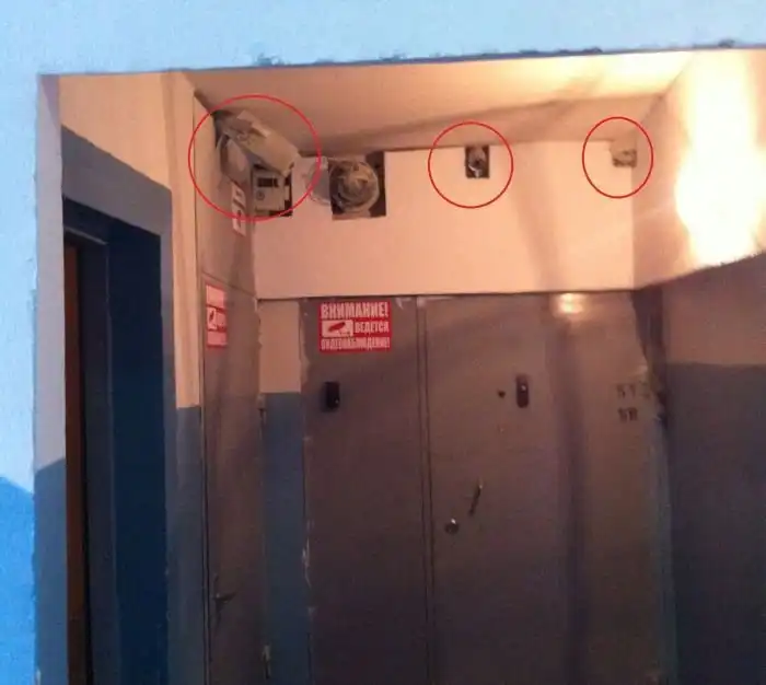 В небольшом городе Ульяновской области в обычном 9-этажном доме один чересчур подозрительный жилец обвесил весь подъезд камерами видеонаблюдения. Считаете слова «весь подъезд» преувеличением, тогда давайте сами посчитаем камеры, которые можно заметить.