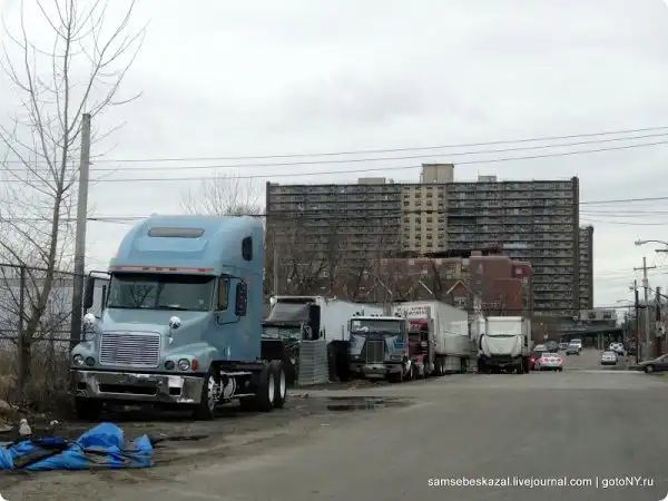 Стоянка траков. Нигде в Нью-Йорке не видел, чтобы промзона была так перемешана с жилой застройкой.