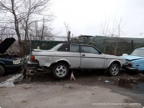 При виде это фотографии сердце многих вольвистов обольется кровью. Эту редкую 262С мужик использует как склад запчастей. Как я понял это у него такое хобби, но при этом он не прочь подзаработать на ремонте машины, если выдастся случай.