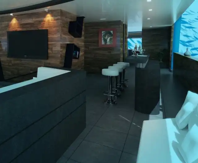 пятизвёздочного отеля, с гостиной, спальней, роскошной обстановкой и баром.