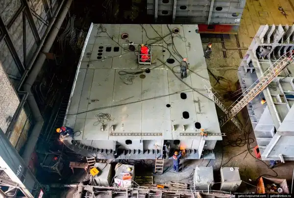 В настоящее время на большом стапеле «А» формируется корпус головного универсального атомного ледокола проекта 22220 мощностью 60 МВт. Атомный ледокол, названный «Арктика» станет самым большим и самым мощным в мире!