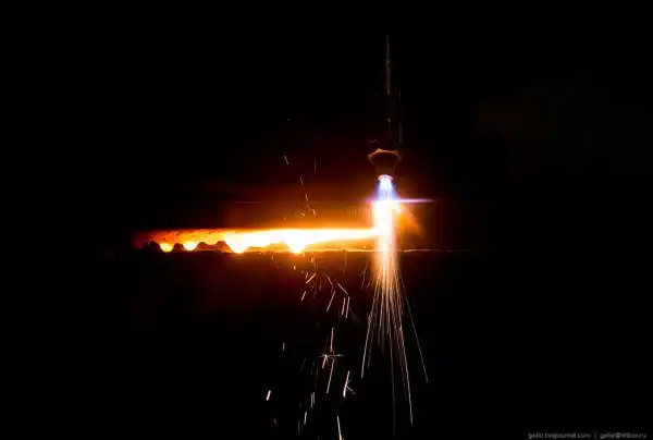 Затем обработанный металлопрокат перемещается на участок резки, где две машины фирмы Мesser методом плазменной резки производят дальнейшую обработку металла. Резка и маркировка деталей производится на роботизированной линии.