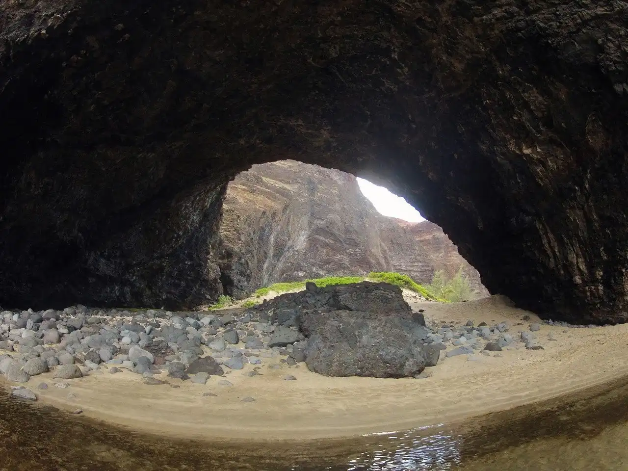 Это Гавайи, США. Наверное, нет более изолированного и удалённого пляжа, чем Хонопу, который находится на побережье Пали острова Кауай (Kauai’s Na Pali Coast). К нему не ведёт ни одна дорога, ни тропа. Более того, единственным законным способом добраться до него можно вплавь.