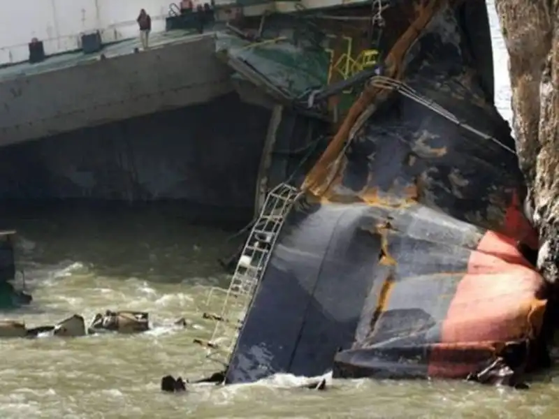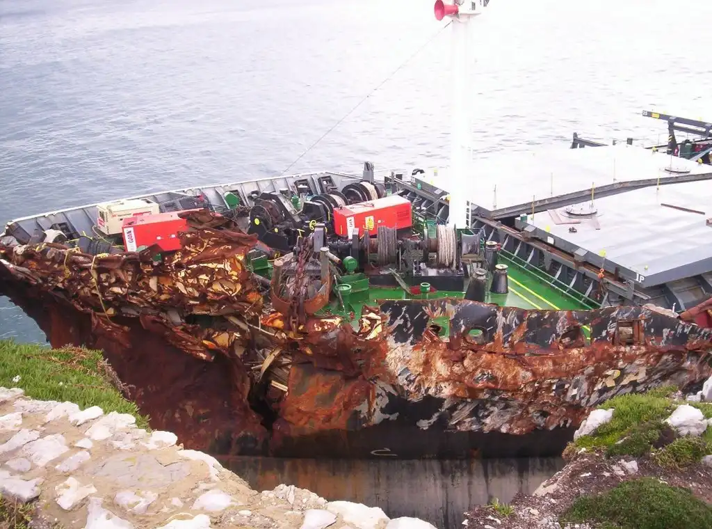 В тот же день вскоре после снятия всех членов команды судно под действием волн разломилось надвое в районе 6-го трюма.