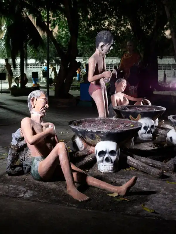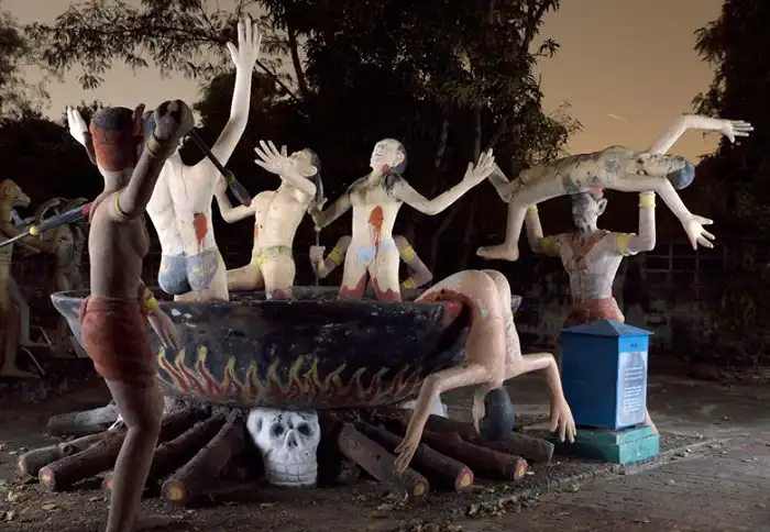 Все муки буддистских грешников детально изображены с помощью скульптур в саду одного из монастырей близь Бангкока в Таиланде.