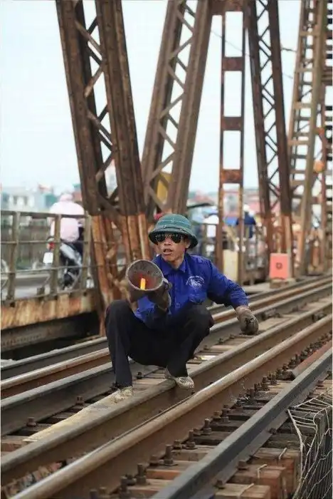 Рабочие из стран Азии постоянно демонстрируют невероятную ловкость, которая порой граничит с полным безрассудством. Не исключением являются и эти парни из Ханоя, столица Вьетнама, ремонтирующие старый мост Лонг Бьен. Им необходимо постоянно следить за тем, чтобы раскаленные болты не остывали, поэтому они решили действовать подобным образом.