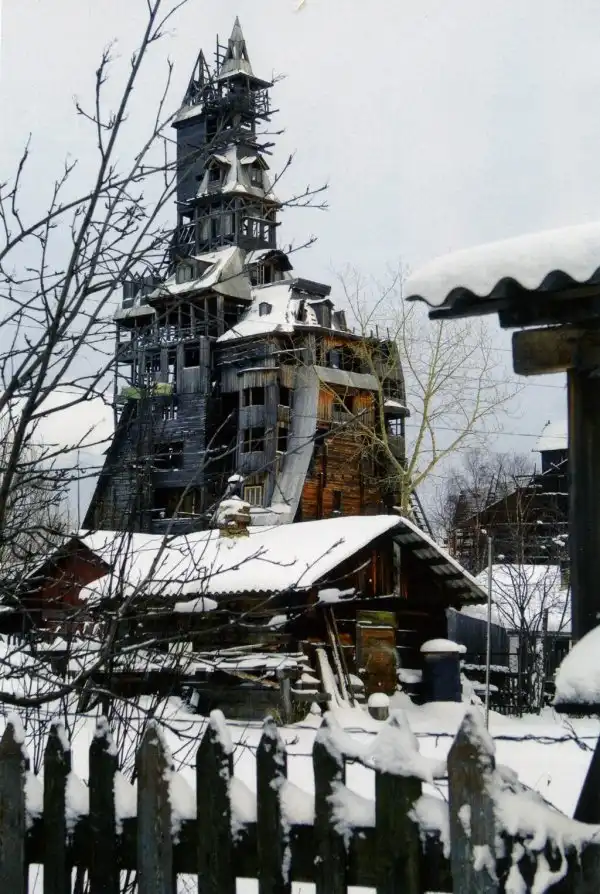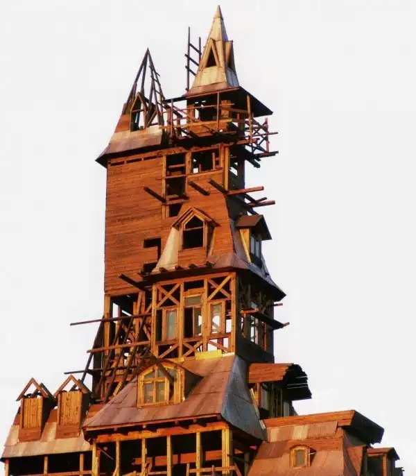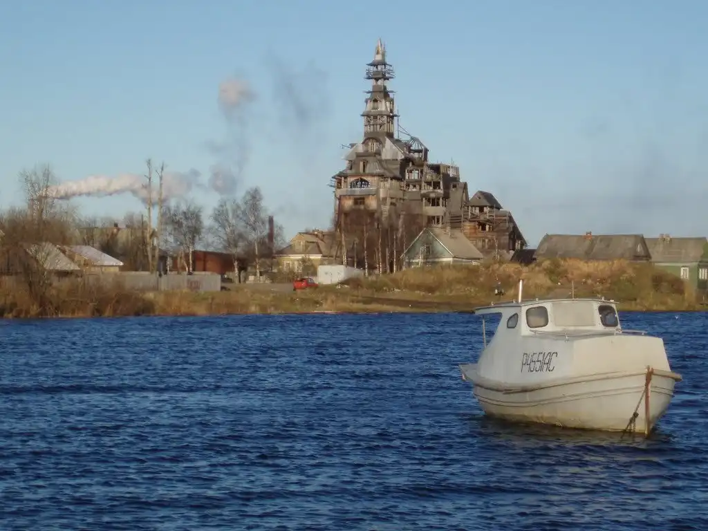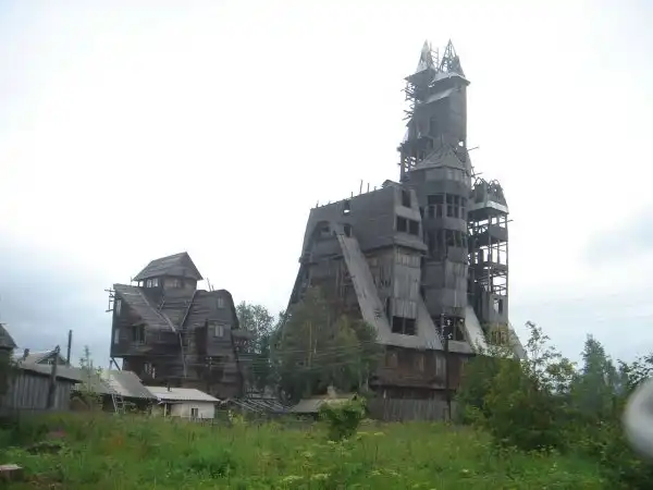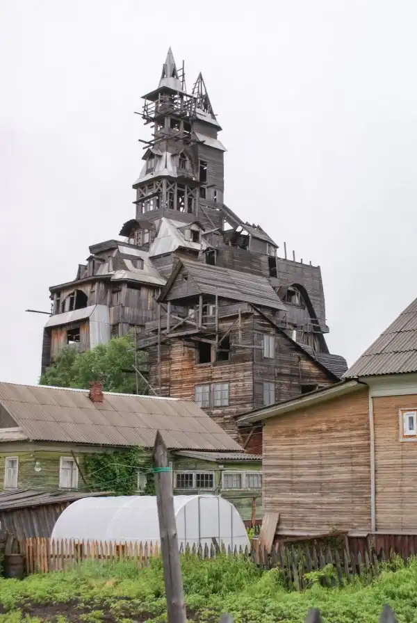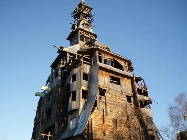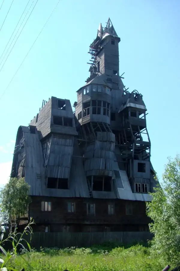 Несколько лет назад, в северной части России, на окраине города Архангельска, стоял высокий деревянный дом – причудливый винегрет из опалубки, который вырос во всех направлениях, но в основном вверх. Издали он напоминал японскую пагоду, но при близком рассмотрении это была фантасмагорическая конструкция, которая больше походила на логово злого сказочного персонажа. Он имел 13 этажей и достигал высоты 44 метров.