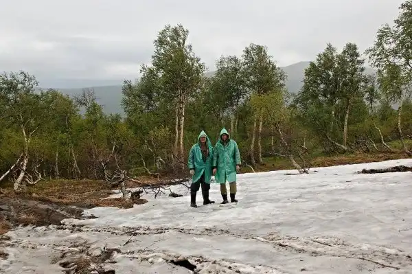 Мы без аккумулятора и без бензина стоим в трех-четырех километрах от перевала Дятлова, никого нет и ближайшую неделю вряд ли будет, да еще ко всему начинает валить мокрый снег для полного счастья. В голову не приходит ничего интереснее, чем прогуляться до памятника, до него ведь от нас рукой подать. Пошли. Вышли на отрытое пространство, а там такая метель, что, не дойдя до места метров пятьсот, сказали себе: «Ай, да ну его. Пошли “домой”». Вернулись к «запорожцу», нашли пустую пластиковую бутылку, слили в нее бензин и запитали из бутылки топливную магистраль. Машину завели с помощью маленького аккумулятора — зарядки для гаджетов. Потом выбрали ровную площадку, выехали туда «запорожцем» и начали обустраивать лагерь.