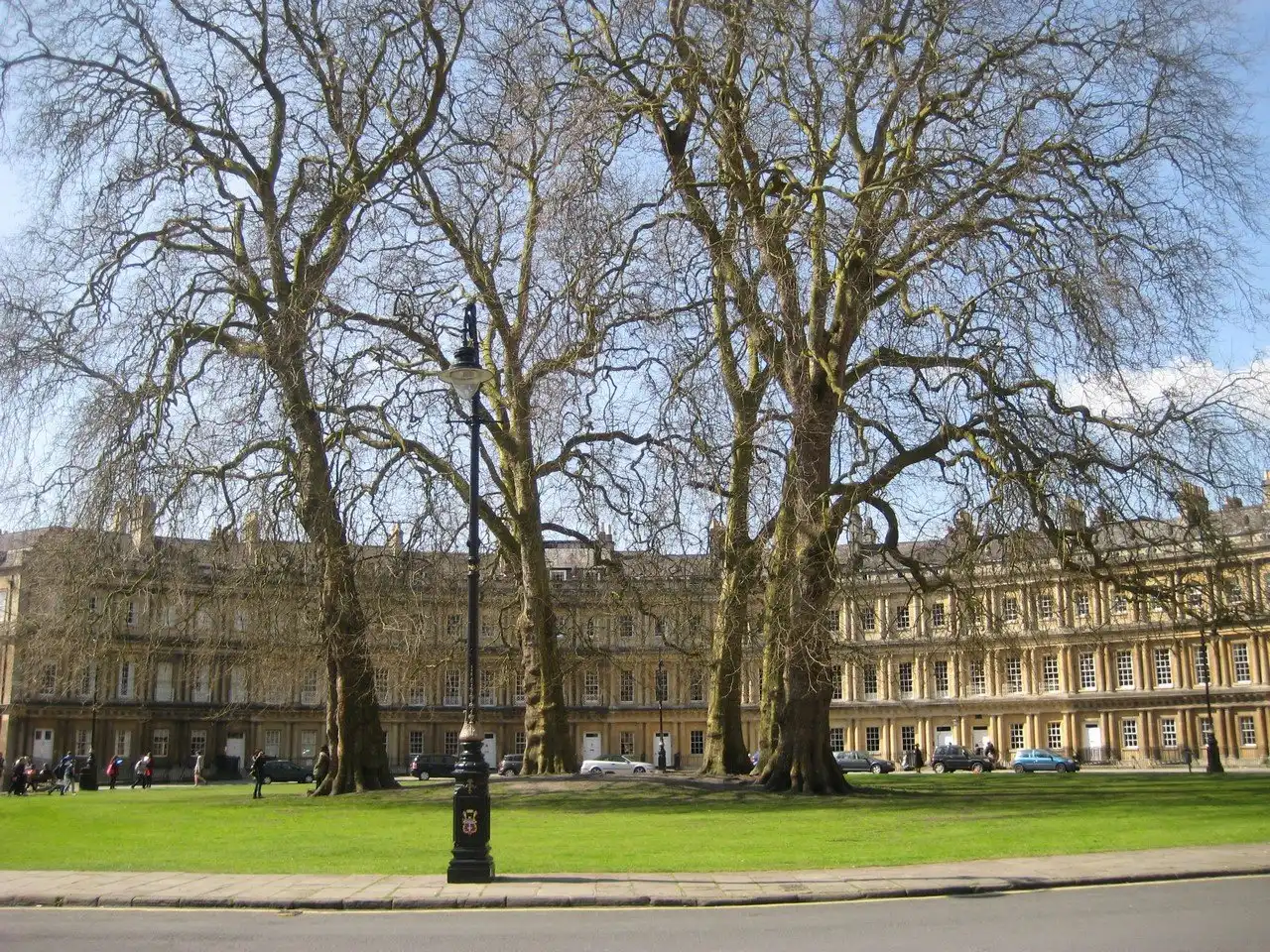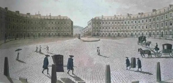 Строительство зданий было начато в 1755-м и завершено в 1768 году. Во время «Батского блица», авианалета на город в 1942 году, бомба попала в один из домов и уничтожила его, но позже он был восстановлен. Каждый из трех симметричных дугообразных домов комплекса насчитывает три этажа. Фасады украшают колоннады коринфского и дорического стилей, а на фризах можно видеть множество резных и декоративных элементов, в том числе масонских символов, которые Джон Вуд часто использовал и в других своих работах.