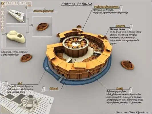 Крепость Аркаима была построена по радиальной схеме из бревен и кирпичей, жили здесь люди европеоидного типа, были дома, мастерские и даже ливневая канализация. Также здесь были найдены изделия из кости и камня, орудия из металла, литейные формы. Считается, что в городе могли жить до 25 000 человек.