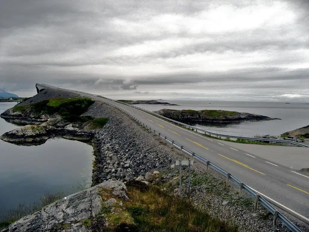 Атлантическая дорога пролегает по 12 мостам прямо над океаном. Не так давно ее признали строением века. Во время строительства рабочие пережили 12 штормов. Теперь это еще одна достопримечательность для туристов и очень удобное место для рыбалки.