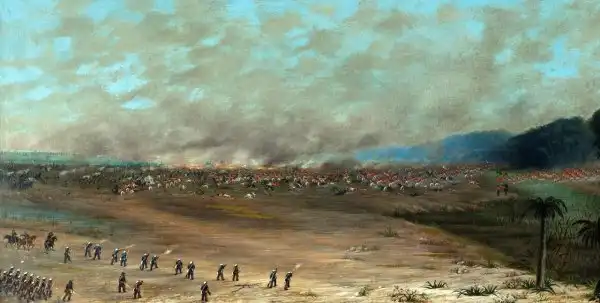 - Парагвайский народ бился до последнего, даже враги отмечали массовый героизм населения, бразильский историк Роше Помбу писал: «Множество женщин, одни с пиками и кольями, другие с малыми детьми на руках яростно швыряли в атакующих песок, камни и бутылки. Настоятели приходов Перибебуи и Валенсуэла бились с ружьями в руках. Мальчики 8-10 лет лежали мертвые, и рядом с ними валялось их оружие, другие раненые проявляли стоическое спокойствие, не издавая ни единого стона».