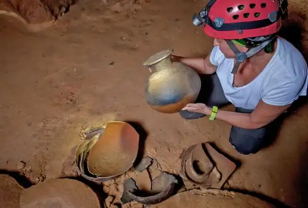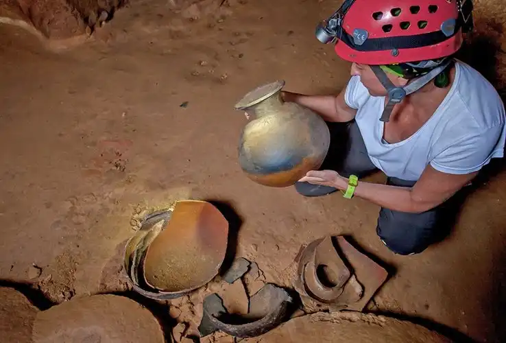 Там имеется темный, очень узкий и низкий туннель. Нужно лечь на землю и проползти примерно 150 метров, чтобы оказаться в следующем помещении, которое выглядит как антикварная лавка, наполненная древними вазами. После обнаружения этого сокровища археологи призадумались: какие еще сюрпризы скрыты в пещерах?