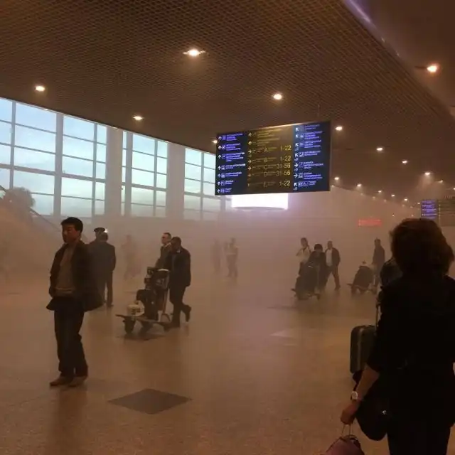 3 сентября в 7 часов утра сотрудники МЧС вместе с персоналом московского аэропорта «Домодедово» провели срочную эвакуацию пассажиров. В складском помещении, где хранились строительные материалы одной подрядной организации, проводившей строительные работы, произошло возгорание. Огонь распространился на площади 15 квадратных метров, а дым попал в систему вентиляции и вызвал серьезное задымление, которое и стало причиной эвакуации. Вместе с тем были приостановлены вылеты. За медицинской помощью никто из пассажиров не обращался. После 11 часов аэропорт начал работать в штатном режиме, однако, на подъездах к нему образовалась пробка, у входа столпилось большое количество людей, а с рейсами произошла полная неразбериха. Что происходило в аэропорту, нам расскажут фото из соцсетей.