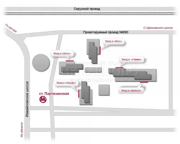 Архитектурное решение гостиничного комплекса по замыслу создателей отеля отражает олимпийскую символику. По этой причине гостиничный комплекс «Измайлово» включает в себя 5 корпусов, что выступает символом 5 переплетенных олимпийских колец, являющихся, в свою очередь, символом Олимпиады. Пять высотных зданий, каждое из которых состоит из 30 этажей, располагаются вокруг центральной площади, образуя крупнейший во всей Европе гостиничный комплекс. Корпуса данного комплекса имеют свои названия – «Альфа», «Бета», «Вега», «Гамма» и «Дельта». Корпус «Гамма» отеля и «Дельта» объединены между собой, поэтому они нередко упоминаются как гостиница Измайлово «Гамма-Дельта». Корпуса этой гостиницы в народе получили имя «АБВГДейка».