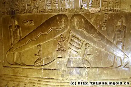 Удивились и электрики. Даже сегодня нет такой гигантской лампы накаливания, как изображенная на этом рельефе. И хорошо, что нет. Подобные колоссы опасны: ведь сила разрушения лампы под действием атмосферного давления возрастает по мере увеличения её объёма. Египтологи же истолковывают этот рельеф совсем иначе, чем любители сенсаций, мастера путать столетия и открытия. Рельеф полон символики. Сам иероглифический способ письма побуждал египтян видеть за изображениями нечто иное – то, что подразумевается. Реальность и её образ не совпадали. Элементы египетских рельефов были, скорее, словами и фразами, которые надлежало понять.