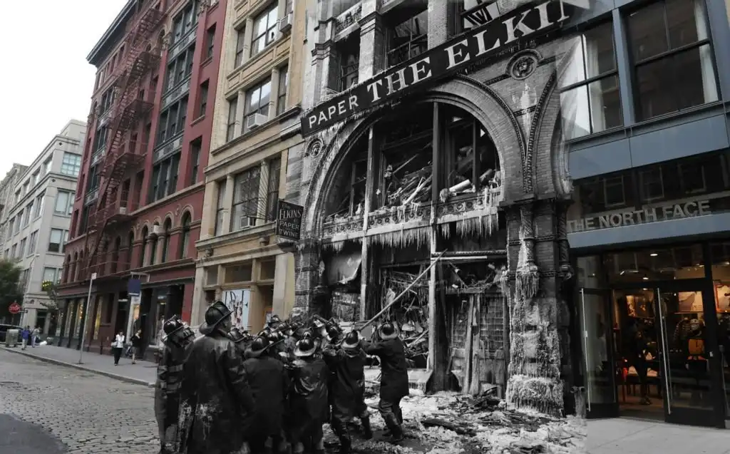 137 Wooster st. Серьёзный пожар в здании компании Elkins Paper & Twine Co унес жизни шестерых пожарных. Сразу после того как останки тел были извлечены, здание было полностью разрушено. Сейчас на его месте стоит современная офисная постройка.
