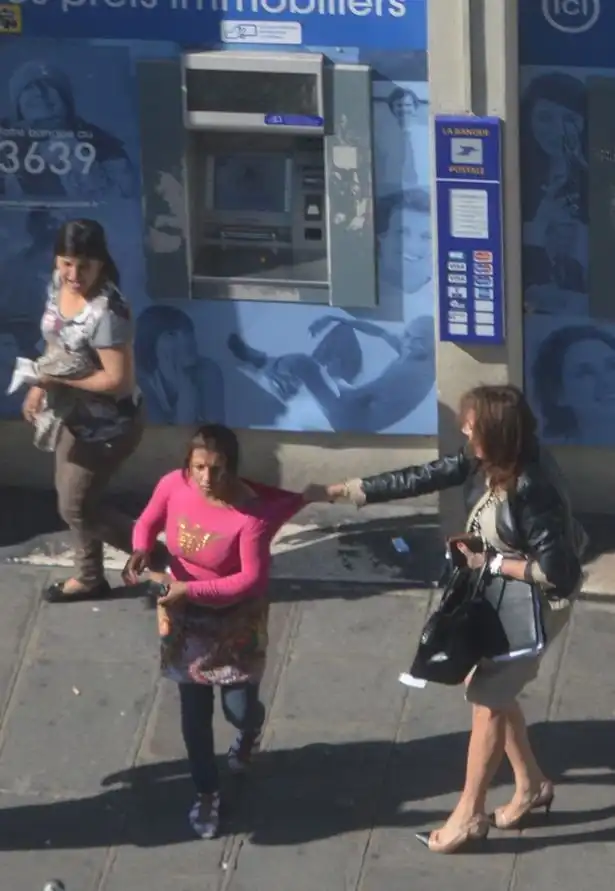 Париж и Марсель уверенно занимают призовые места по количеству уличных краж, так что ситуация, запечатленная на этих фотографиях, довольно типична. Подходишь снимать деньги, вводишь пин-код, и тут же возле тебя появляются две цыганки. Одна жмет на кнопку снятия самой крупной суммы денег, а вторая заботится о том, чтобы бабло попало в руки не тебе, а им.