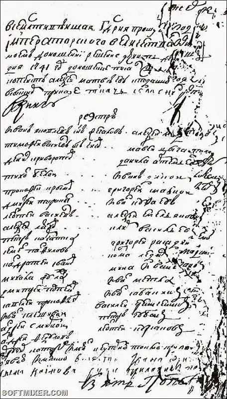 Фрагмент донесения Ивана Каина в Сыскной приказ с реестром его товарищей – “мошенников”. 27 декабря 1741 года.