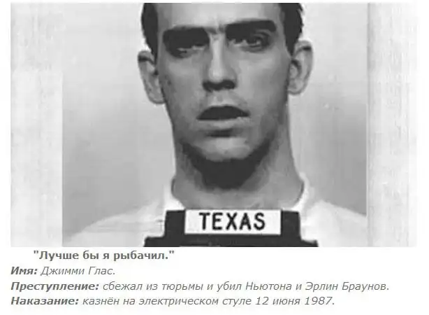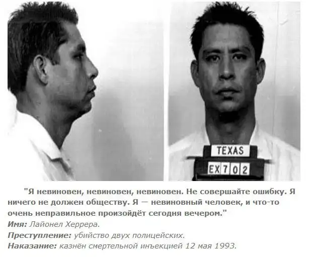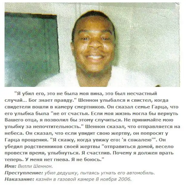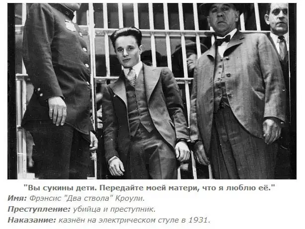 35 убийц из США, которые были казнены различными способами. Каждый из них высказался перед смертью, кто-то пытался оправдаться, кто-то цинично отшучивался.