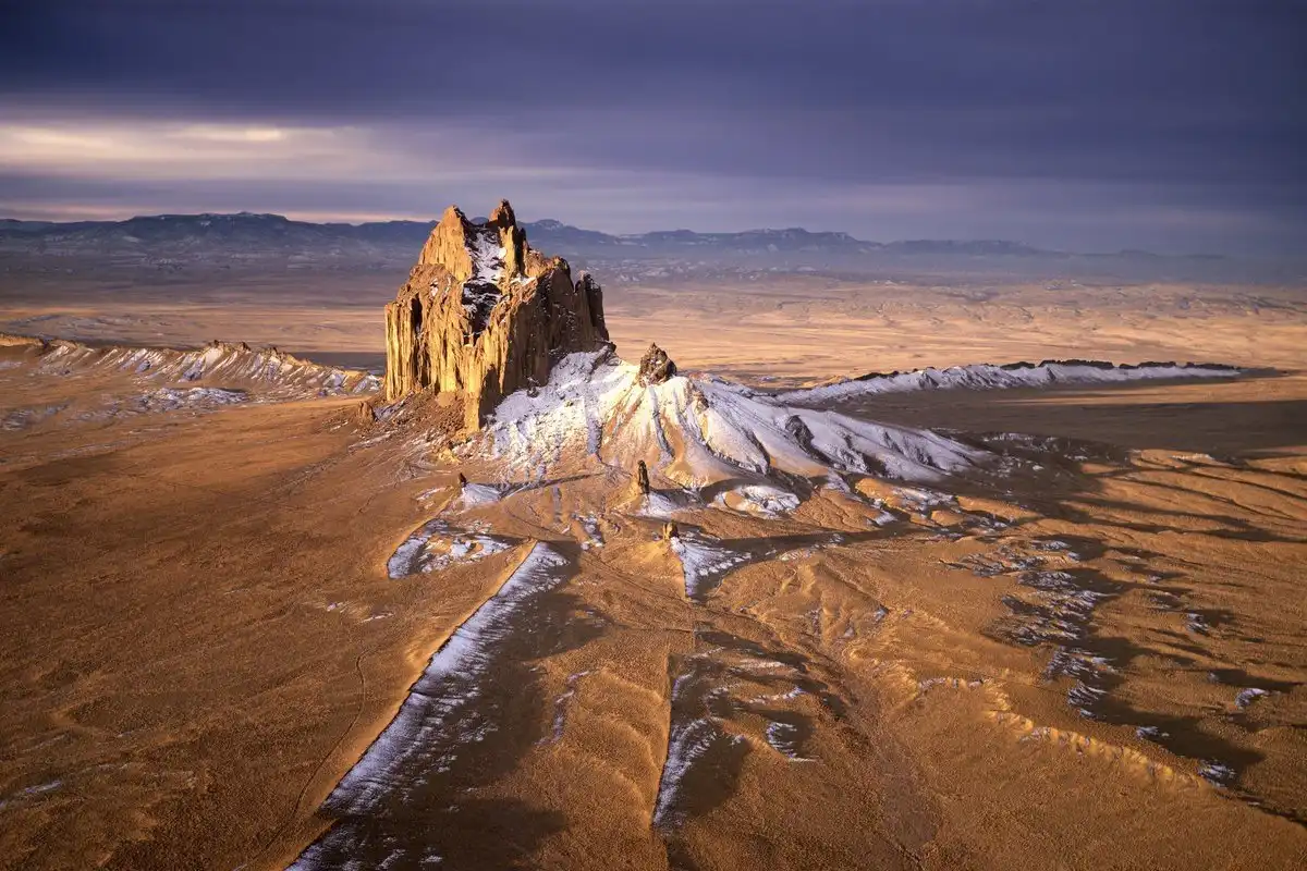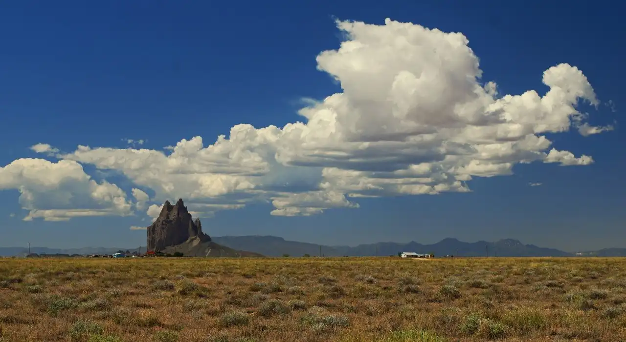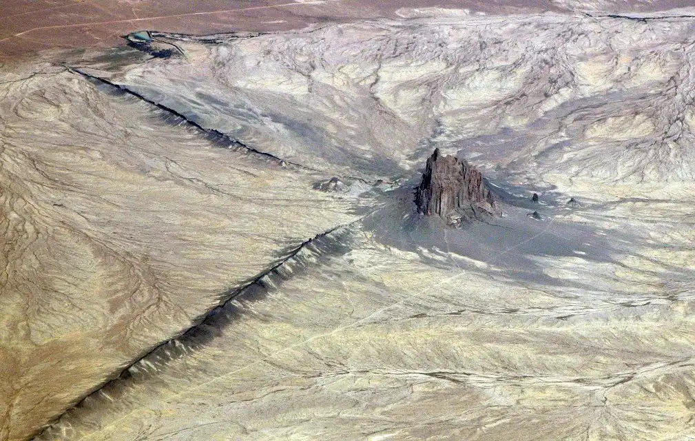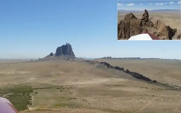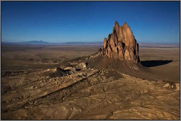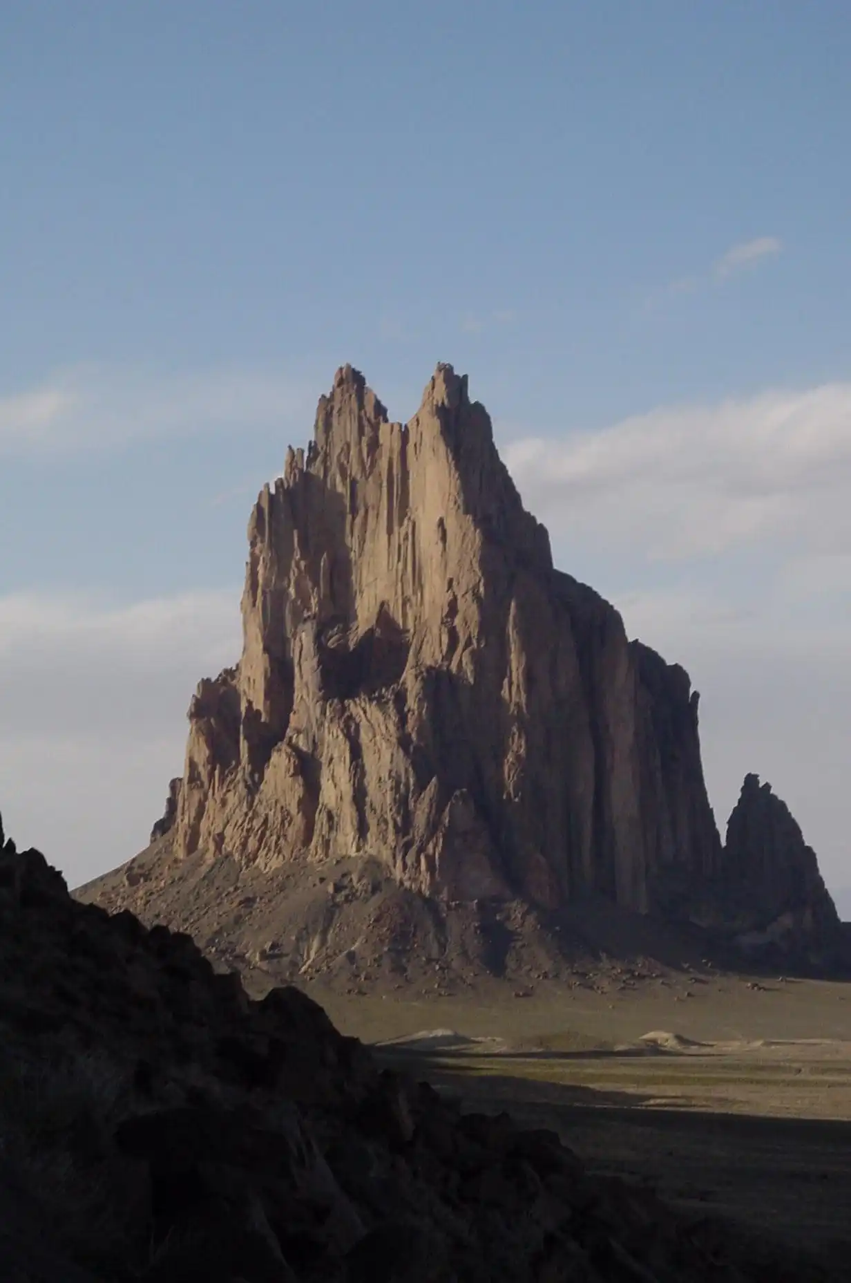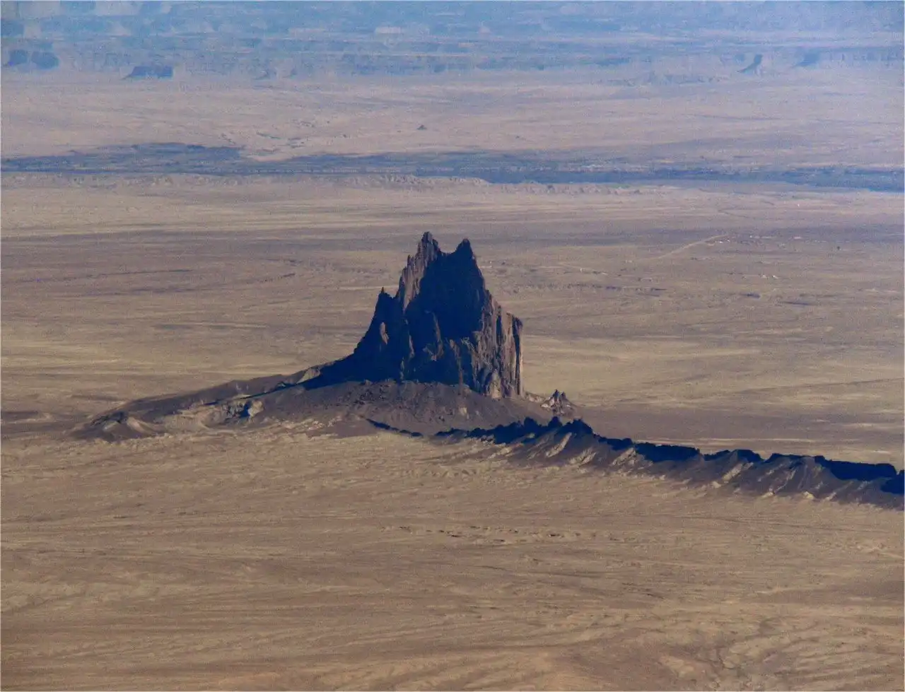 Расположенный на северо-западе штата Нью-Мексико, загадочный Шипрок представляет собой результат извержения вулкана, случившегося около 30—40 миллионов лет назад. Основная его часть имеет высоту 600 м, диаметр 500 м, и находится в 2300 м над уровнем моря. Своим названием это местечко обязано сходству с носом корабля. Шипрок известен и как Тсе Битай («окрыленный камень»), имя, данное ему индейцами навахо. Многие туземные племена региона считают эту таинственную скалу священной. Она же была существенным ориентиром в пути для американских переселенцев на Дикий Запад и впоследствии сыграла множество ролей в самых разных фильмах про Дикий Запад.