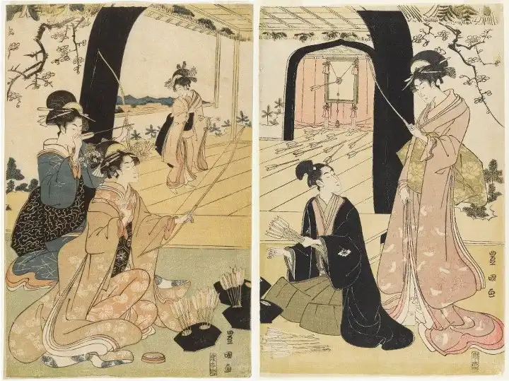 Когда возникала реальная угроза попасть в плен к врагу, они не только решительно принимали смерть от рук родственников мужского пола или их командиров, но и сами убивали мужчин, если по какой-то причине они не могли или не желали совершить ритуальный акт и не щадили в такой ситуации ни себя, ни своих детей. Один из самых древних эпизодов, связанный с принятием и исполнением такого решения, можно найти в старинном сказании о доме Тайра. В части, описывающей морское сражение у Данноура Нииодоно, бабушка малолетнего императора Антоку, столкнувшись с угрозой попасть в плен к воинам Минамото, прижала ребенка к себе и сбросилась с обрыва. За ней последовали её придворные дамы, включая мать императора, которую единственную насильно удалось спасти. Нельзя сказать, что стойкость духа и владение боевыми искусствами были единственными достоинствами таких женщин. Наряду с владением оружием девушки обучались изящным искусствам – танцам, музыке, сложению стихов, каллиграфии, икебане. Умение петь и танцевать не предназначалось для широкой публики в отличие от искусства гейш, и если какая-то из жен воинов и прославилась своими талантами, то только благодаря гостеприимству дома.