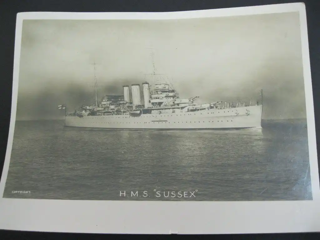 Графство Сассекс расположено на южном побережье Англии (с 1947 административно разделено на Восточный и Западный Сассекс) и его имя до конца XXвека употреблялось в качестве названия кораблей Королевского флота четырежды. Первый Sussex вошел в строй в 1652, но уже в следующем году погиб от пожара. Следующий корабль этого имени, парусный линкор II класса, получил при спуске на воду в 1757 название Union, в 1802 был переоборудован в госпитальное судно, в связи с чем ему присвоили новое имя - Sussex. На счету старого линкора числилось немало битв — в заливе Киберон (20.11.1759), при Уэссане (12.12.1781) и под Тулоном (28.08.1793). В 1816 корабль был разобран.