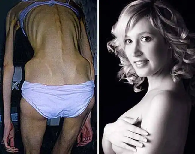 Эта девушка воздушный гимнаст, которой никак нельзя было набирать лишний вес и девушка морила себя голодом, что привело к анорексии. Из-за анорексии у девушки просто не было сил на выполнение трюков, поэтому ей пришлось пересмотреть свои приоритеты. Сейчас она набрала вес и может раскрыть свои потенциал в полной мере.