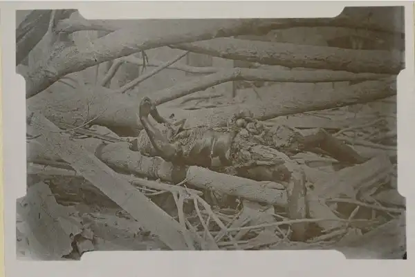Следующим ощущением было удушье, но когда дверь распахнулась, вовнутрь ворвался воздух, и мы немного пришли в себя. Когда мы увидели лица друг друга, они были покрыты черной грязью, младенец умирал. Рита, старшая девочка, страшно мучилась, а у меня болело все тело. Кучка горячей грязи скопилась около нас, и когда Рита опустила руку, чтобы подняться, она обжигающей массой поднялась до ее локтя…»