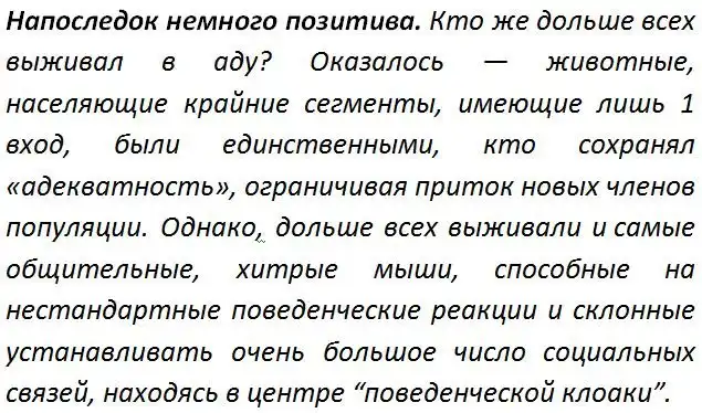 Возможно, у вас остался вопрос, почему эксперимент Д. Кэлхуна назывался «Вселенная-25»? Это была двадцать пятая попытка ученого создать рай для мышей, и все предыдущие закончились смертью всех подопытных грызунов…