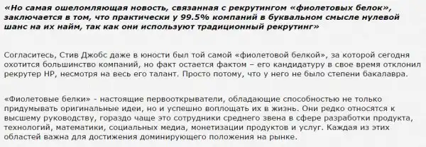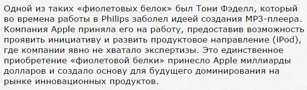 Зарубежные специалисты по управлению персоналом ввели в оборот необычный и броский термин – фиолетовая белка. Так называют уникальных специалистов, мечту всех HR-менеджеров, людей, способных совмещать в себе функции разных работников. Утверждается, что «фиолетовая белка» в компании может быть эффективнее всех остальных нанятых сотрудников. Они ценны своими новаторскими подходами. Однажды попав в вашу компанию, они способны многое изменить в ней — возможности, стиль руководства