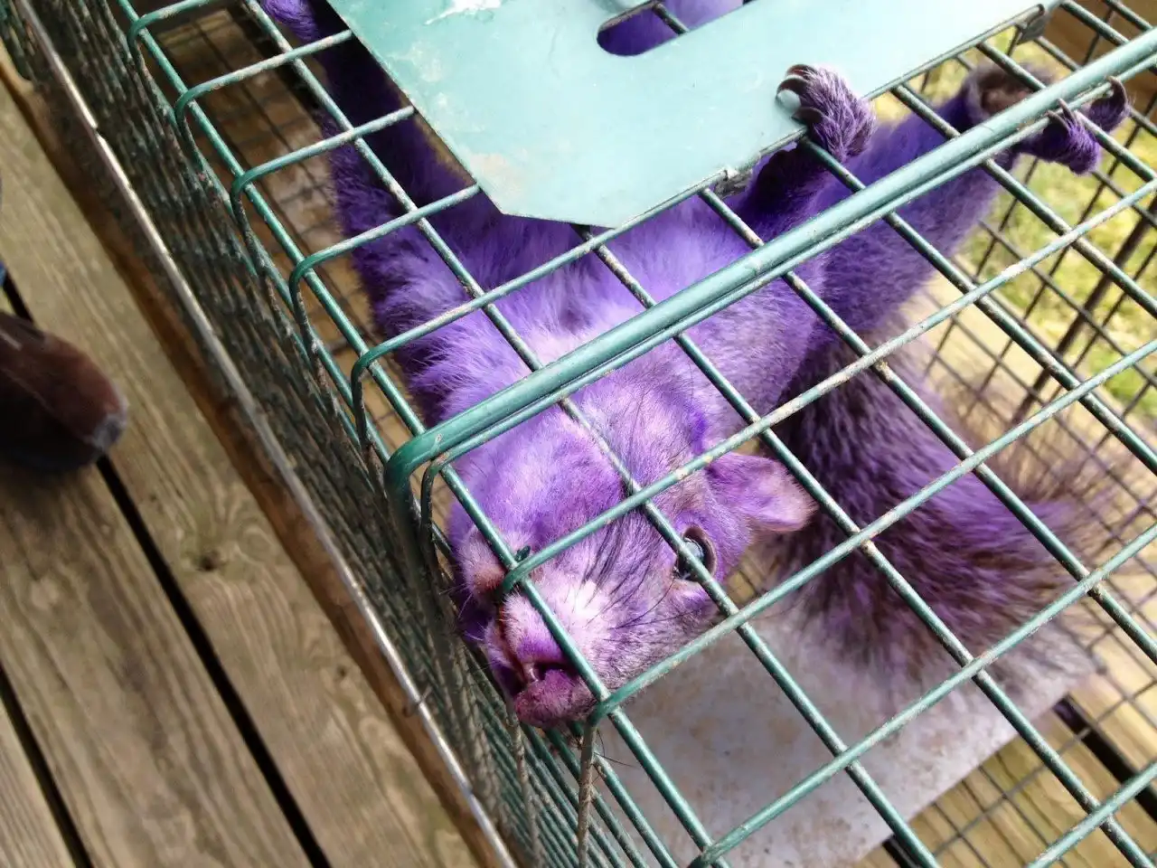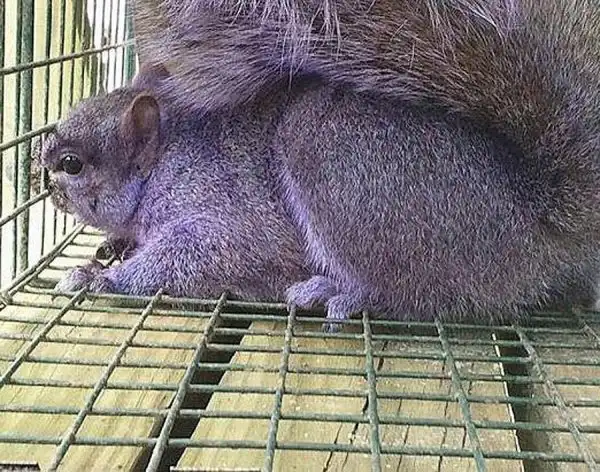 «На заднем дворе нашего дома есть кормушки для птиц, — рассказывает Конни Эмерт, жительница города Джерси-Шор. – Нередко случается, что к кормушкам приходят белки и съедают весь корм, в итоге мой муж недавно начал ставить ловушки для белок – он ловит их, а затем выпускает в лесу, чтобы они не объедали птиц. Я несколько раз видела во дворе фиолетовую белку, но, когда говорила об этом мужу, он, разумеется, думал, что я шучу. Однако в прошлое воскресенье фиолетовая белка попалась в ловушку – тут уж ему поневоле пришлось поверить мне!».