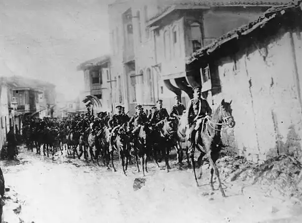 Болгарская кавалерия в захваченном сербском городе. 22 октября 1915 года