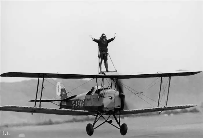 Первым известным случаем ходьбы по крыльям аэроплана во время полета была практическая демонстрация поперечной устойчивости конкретной модели. Пилоту армии США Ормера Локлир во время службы нравилось ходить по крыльям самолета для его настройки и корректировки.