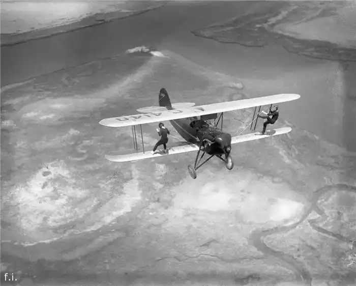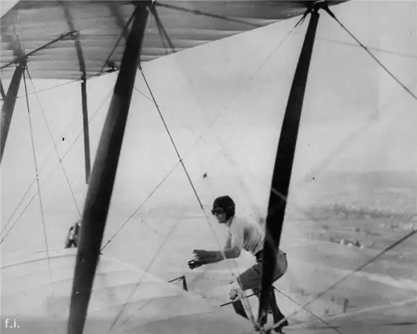 1927 год. Ричард Шиндлер показывает трюк на самолете, пилотируемом Ричардом Перлиа.
