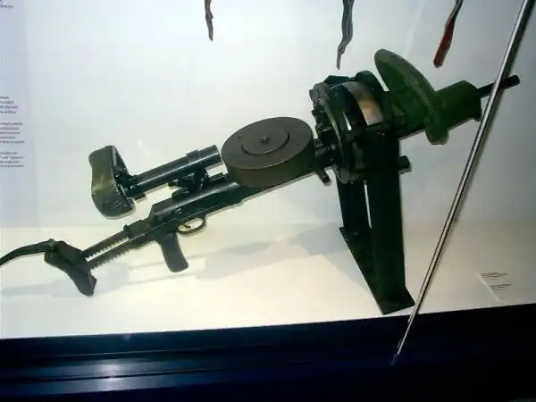 Из органов управления на теле пулемета имеются только спусковой рычаг и ручной предохранитель.