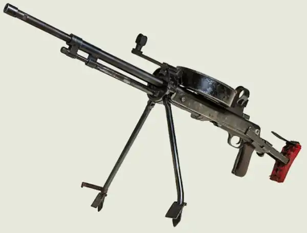 Пулемет комплектовался ремнем для переноски и позволял вести огонь "от бедра", при этом пулемет располагался на ремне, а левой рукой стрелок удерживал оружие на линии огня, наложив левую ладонь сверху на цевье, для чего цевью была придана специальная форма. Прицельные приспособления открытые, с регулировкой по дальности и углу места, эффективная дальность стрельбы - до 800 метров.
