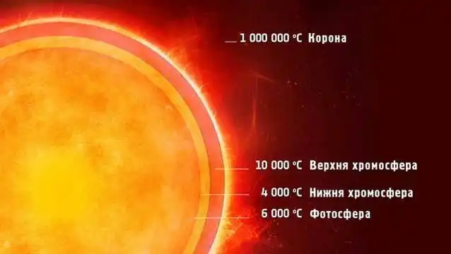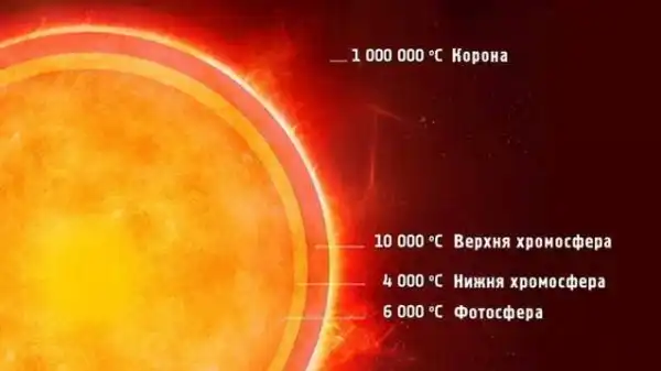 У поверхности конвективная зона переходит в фотосферу — трёхсоткилометровую толщу уже вполне обычного по своим физическим свойствам жидкого водорода. Это — зона охлаждения солнечной материи. Выделившаяся в твёрдом ядре энергия уносится излучением. Обычно указывается, что температура фотосферы Солнца — 5800 К. В действительности же поверхность Солнца нагрета лишь до 4000 градусов, но сквозь верхние слои водорода пробивается свет от глубинных, куда более раскалённых.