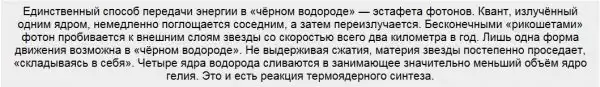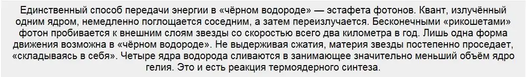 В «холодной» твёрдой материи молекулы сцеплены электронными оболочками. Солнечное же вещество — масса ядер водорода и гелия, распираемая изнутри кулоновской силой (отталкиванием одноимённых зарядов) и скреплённая лишь наружным давлением. Скреплённая так надёжно, что плотность вещества достигает 150 тонн на кубический метр. В результате частицы, набитые в тысячу раз плотнее, чем это дозволяется классической физикой, даже при температуре 14 миллионов градусов куда менее подвижны, чем молекулы в составе кристалла.