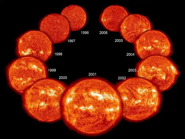 Равновесие, в котором пребывают недра Солнца, устойчиво, но не статично. Звезда «дышит», циклически меняя свою активность. Гравитация приводит к сжатию — крошечному, но наблюдаемому. Сжатие повышает интенсивность термоядерных реакций, которые, в свою очередь, приводят к нагреву и расширению. В результате светимость колеблется в пределах 0,1%. Но почему-то неравномерно. Кратчайший, 11-летний цикл, несмотря на название, длится от 9 до 14 лет. И это очень странно. Более странно, чем если бы продолжительность года на Земле непредсказуемо менялась от 9 до 14 месяцев. Ведь Солнце, в отличие от Земли, внешним воздействиям не подвержено.