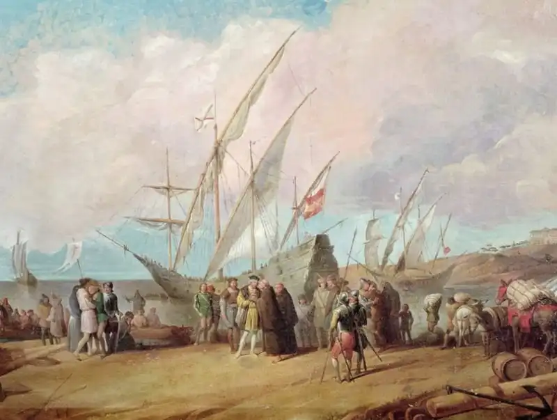 Отплытие экспедиции из Палоса. Фрагмент фрески из монастыря Ла-Рабида