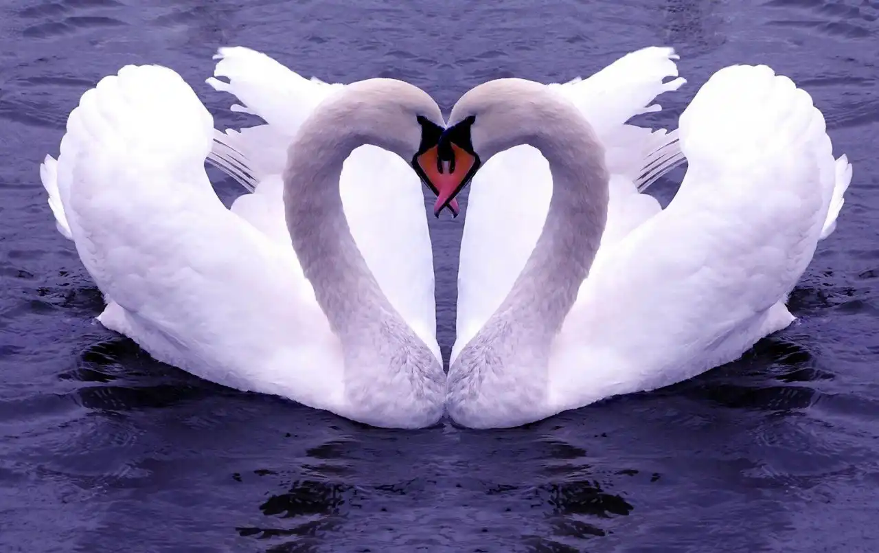 Пара лебедей, подплывающих навстречу друг другу, в момент касания образуют форму сердца. Лебеди являются символом любви, верности и преданности, так как сформированная пара остается вместе на всю жизнь, что в мире животных наблюдается крайне редко.